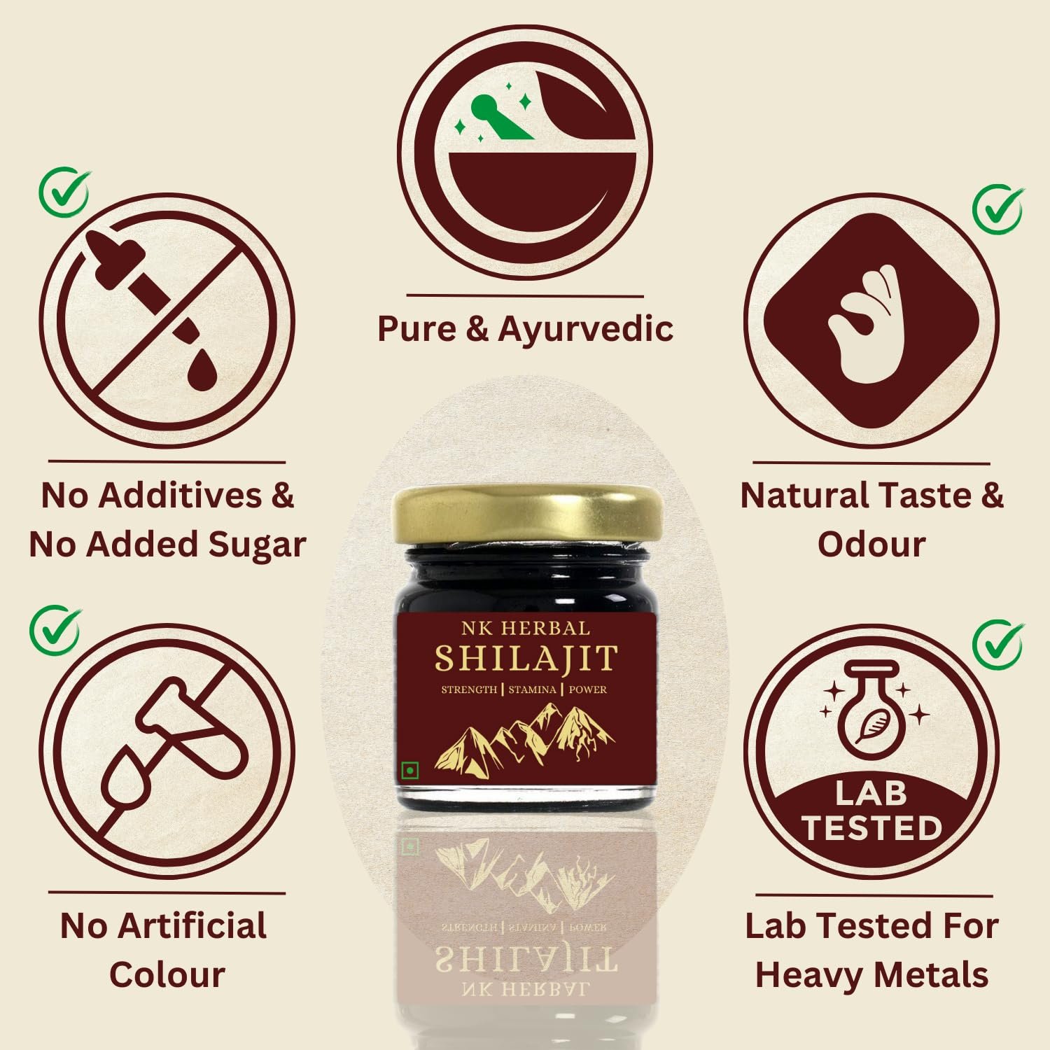 NK Herbal Kashmiri Shilajit is prepared using a traditional purification process inspired by classical Ayurvedic practices. The resin is carefully processed to maintain its traditional form and texture.